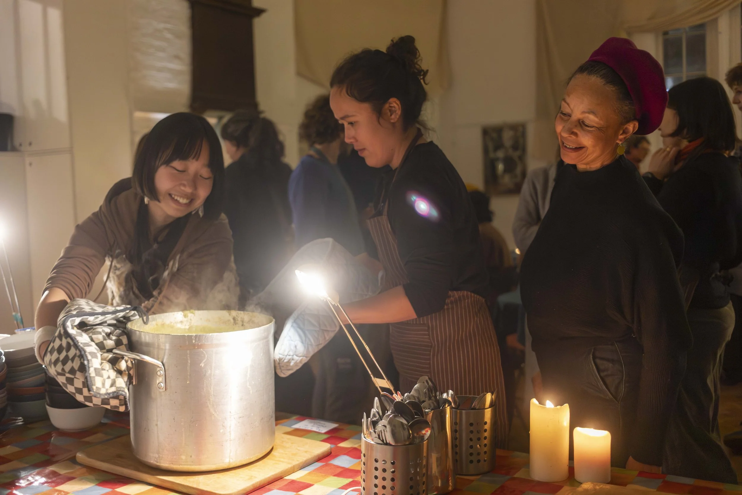 The Curious community collectively host the evening. Together we make soup, working on a wholesome and mindful task, blending an array of ingredients, mixing and balancing a variety of flavours, with which to warmly welcome our visitors.